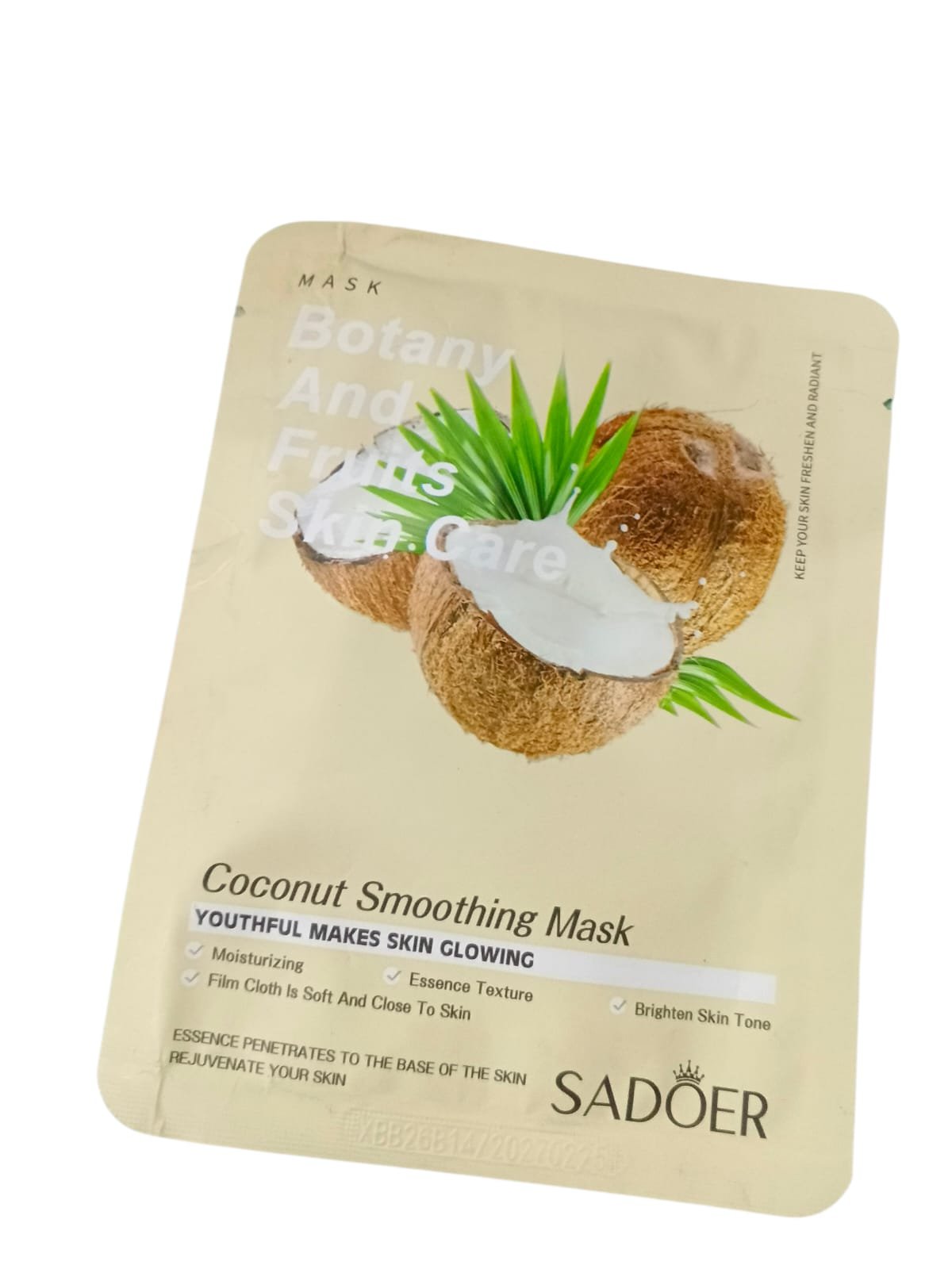 SADOER Coconut Smoothing Mask is enriched with coconut extract to deeply nourish and hydrate your skin. It helps improve skin texture, brighten complexion, and give a youthful glow. The soft sheet fits perfectly, delivering essence deep into the skin for long-lasting moisture.